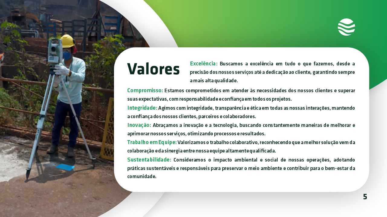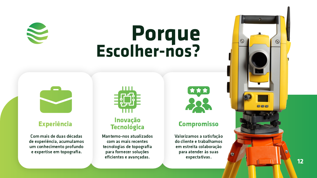 - Compromisso com a inovação e a tecnologia na area de topografia.